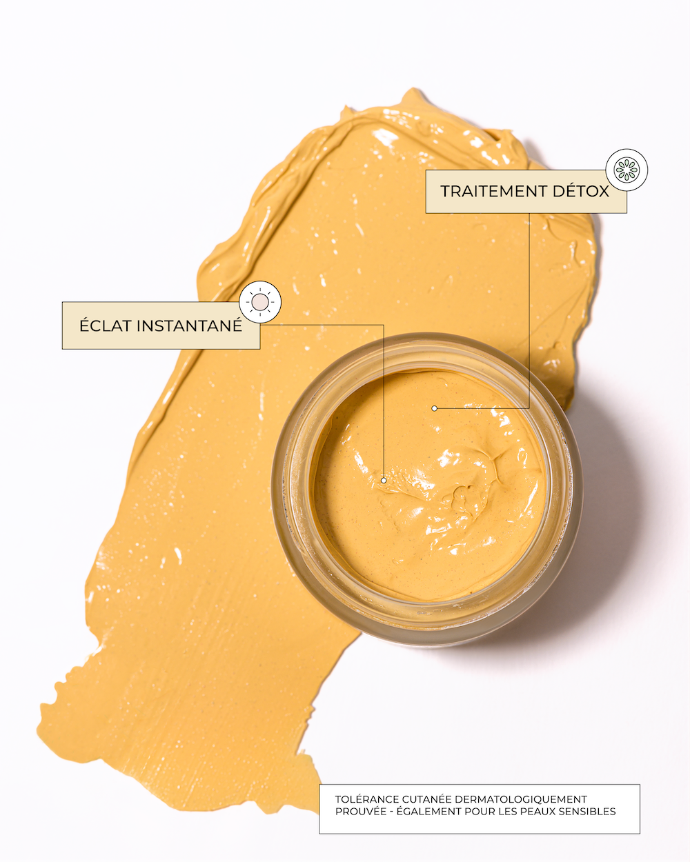 • Radiant skin:  Yuza fruit and kaolin make your skin glow and give it an instant glow.
