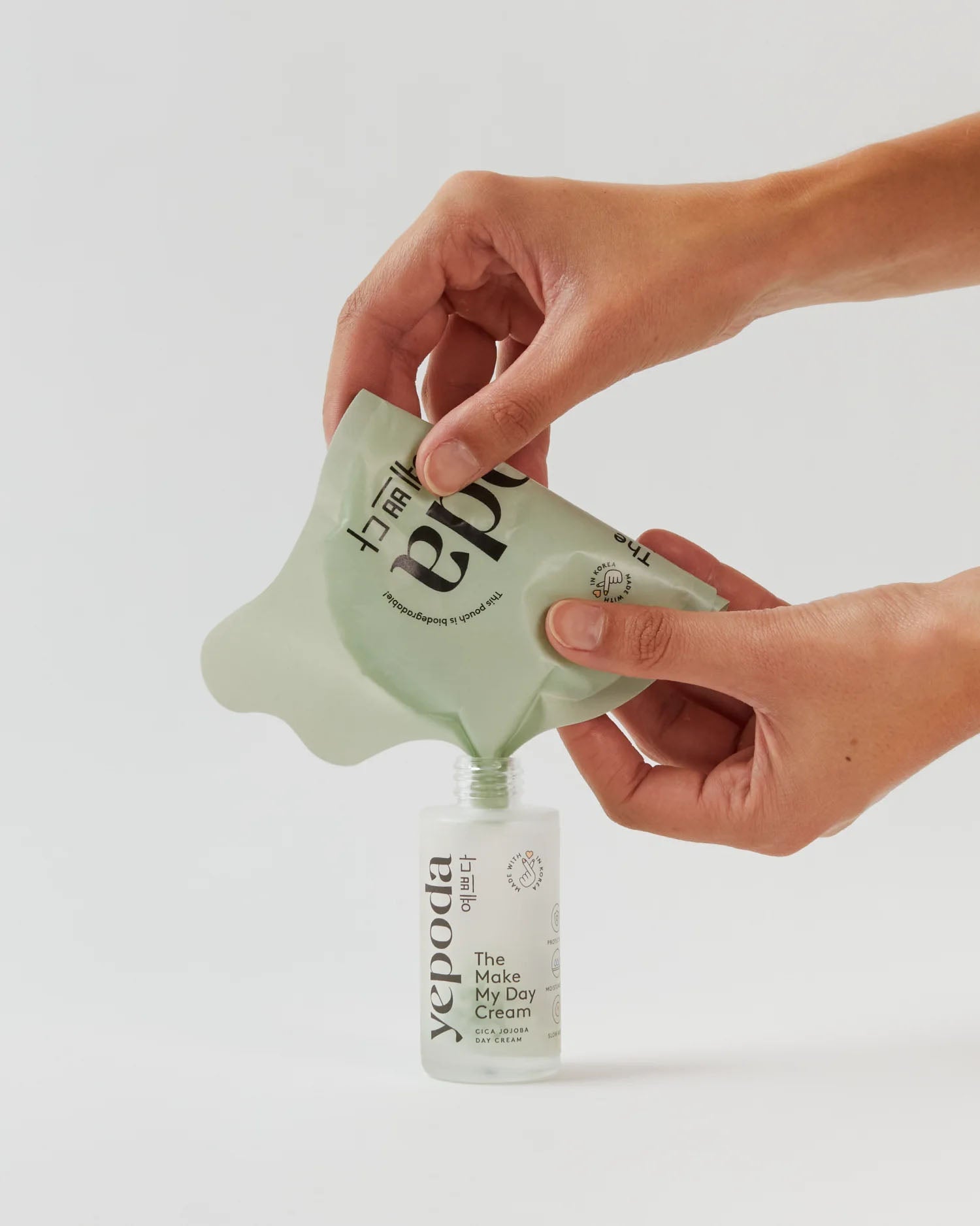 Commencez votre journée de la meilleure manière possible avec The Make My Day Cream - une crème hydratante infusée au pouvoir réparateur de la plante centella asiatica. Sa recharge sous forme de poche biodégradable vous permet de recharger et réutiliser facilement votre flacon The Make My Day Cream sans devoir en disposer quand il est vide; pour une routine plus éco-responsable ! Riche en jojoba, beurre de karité et huile de camélia, cette crème offre une forte hydratation. La présence de céramides assure une protection contre des agressions extérieures sur la peau (e.g. pollution).